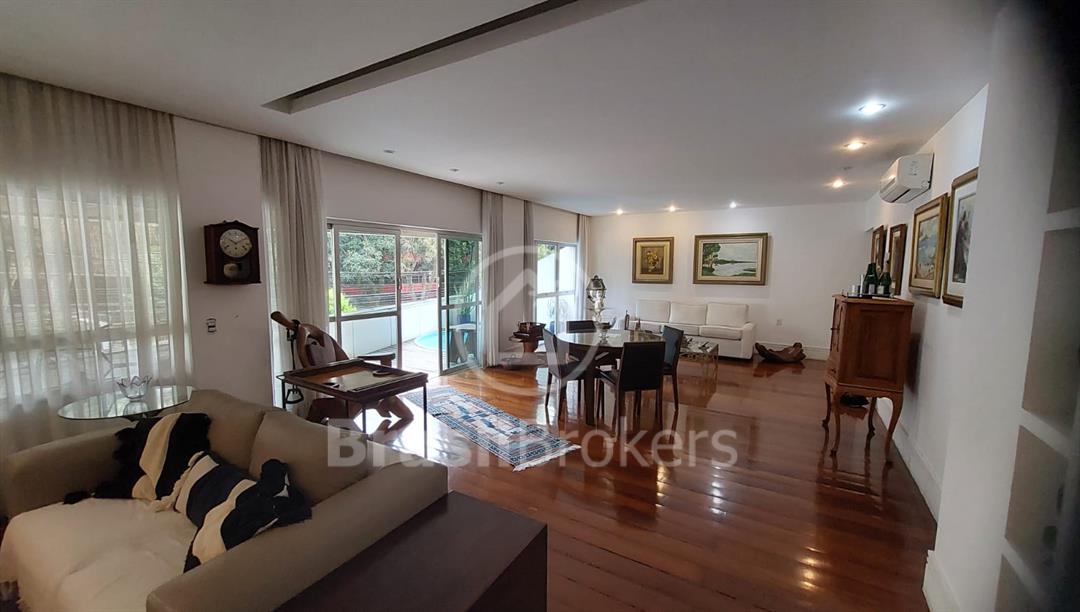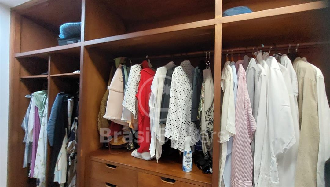 Existem 3 quartos com armários (possibilidade de reversão para 4 quartos), 2 suítes, lavabo, copa cozinha planejada, área de serviço com dependências completas e 3 vagas na garagem