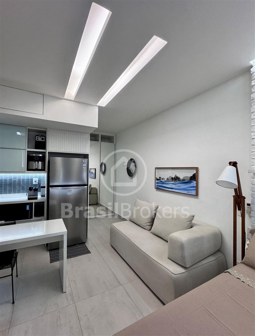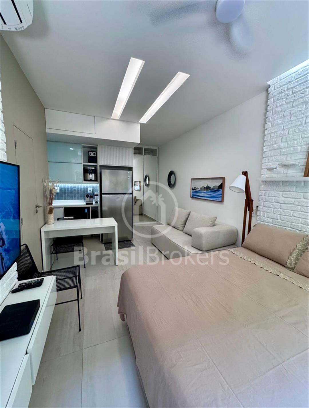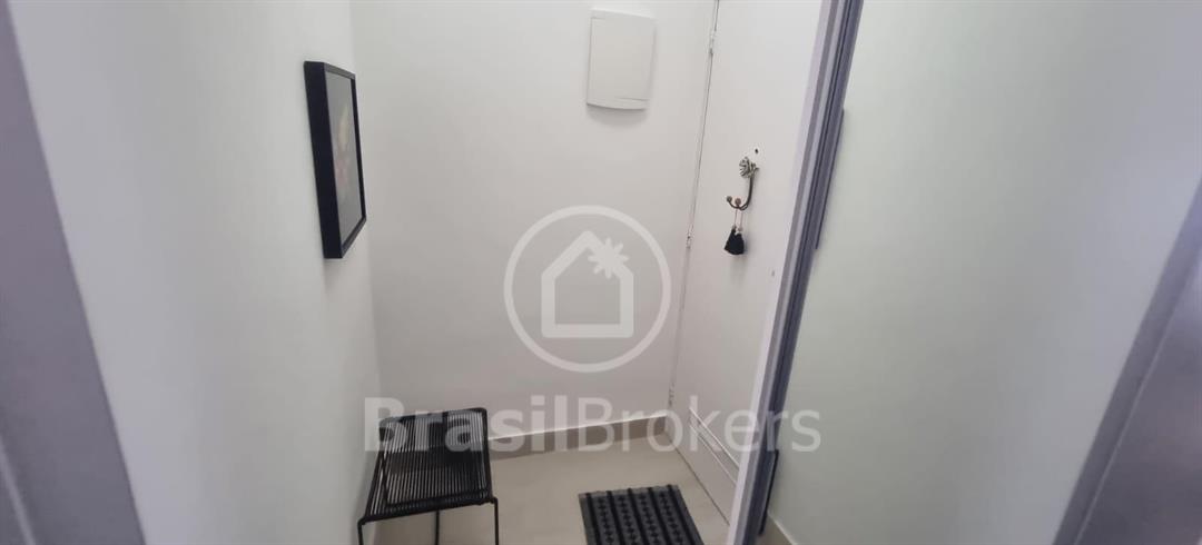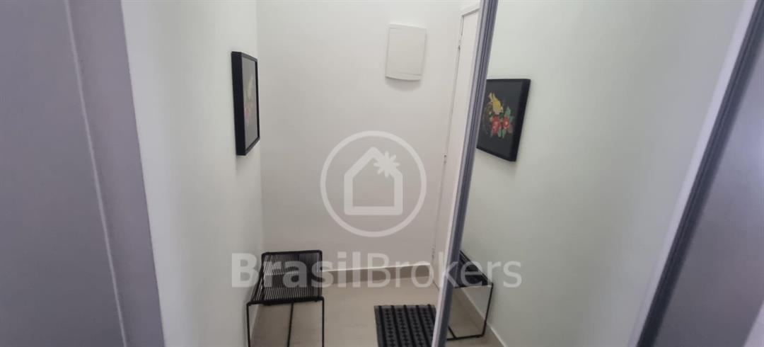 Lindo apartamento conjugado, reformado, de frente, com pequeno hall de entrada, banheiro e cozinha finamente reformados, possuindo armário embutido, no bairro de Copacabana