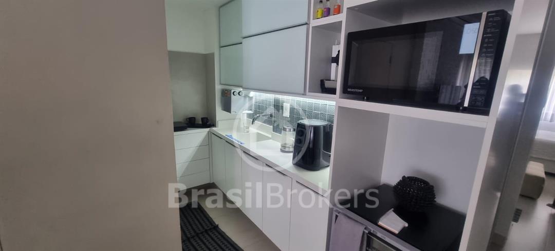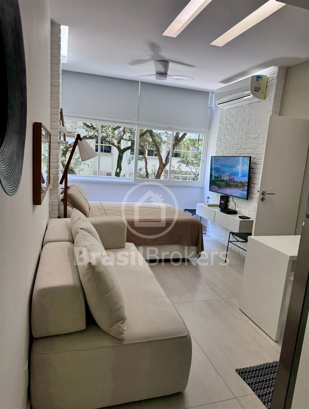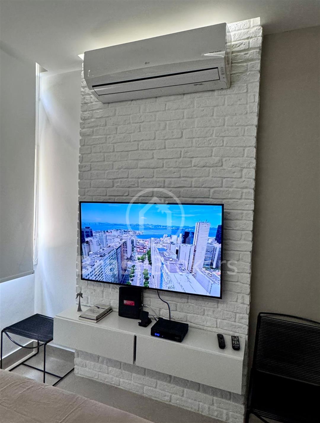 Lindo apartamento conjugado, reformado, de frente, com pequeno hall de entrada, banheiro e cozinha finamente reformados, possuindo armário embutido, no bairro de Copacabana