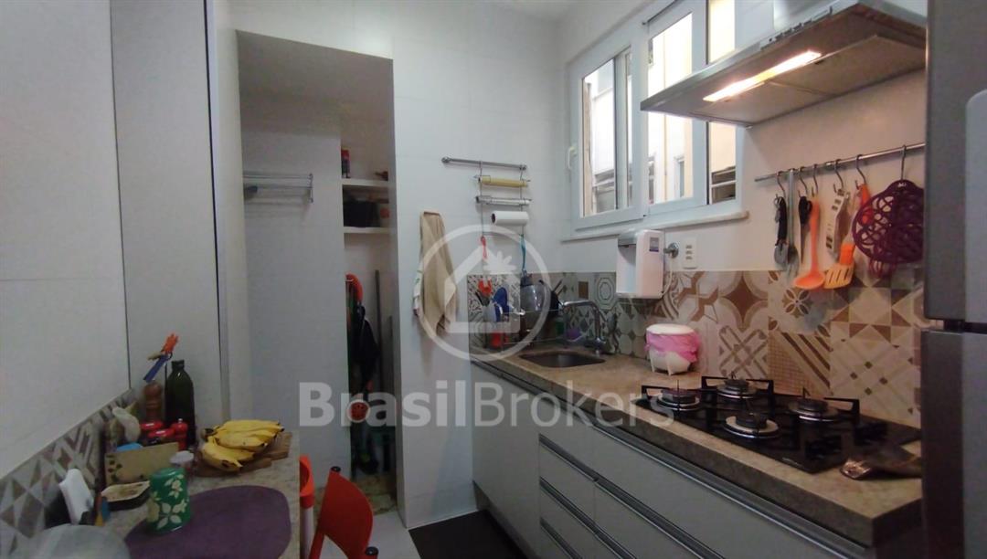 Banheiro social, cozinha com armários planejados e área de serviço