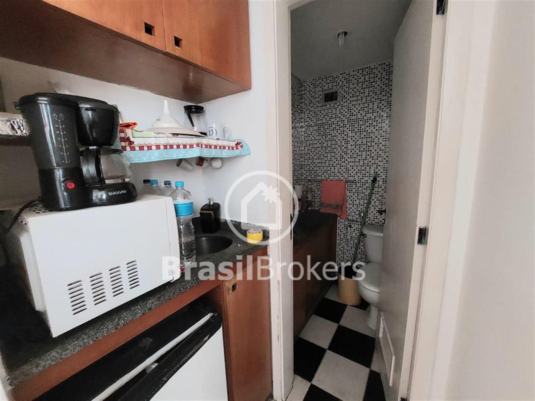 Essa sala oferece 30m² de área útil, lavabo, espaço para frigobar e cafeteira, além de uma vaga na escritura