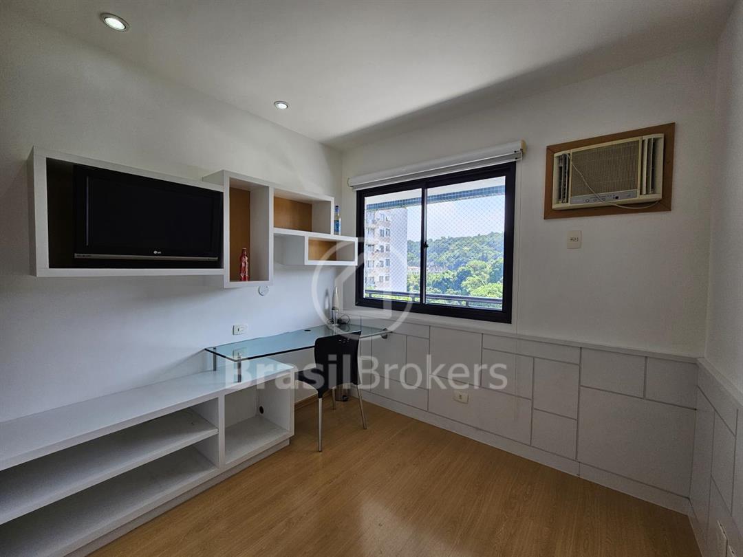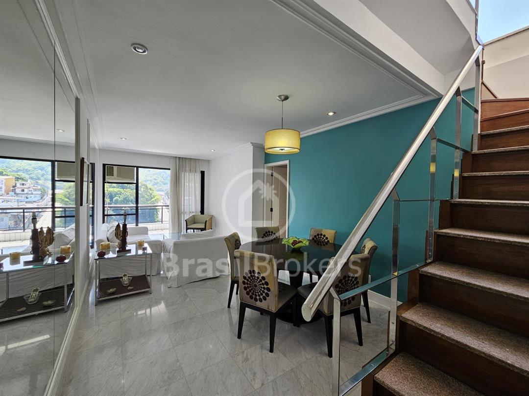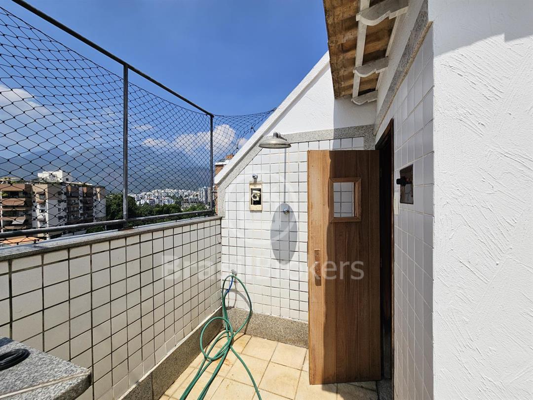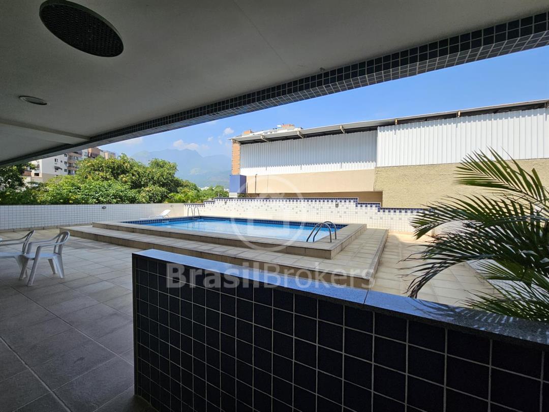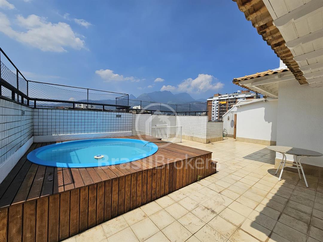 Cobertura duplex numa das ruas mais procuradas do bairro Freguesia. Primeiro pavimento; sala ampla em 2 ambientes com saída para varandão, luz indireta, gesso, sol da manhã, vista livre, cozinha com armários embutidos, piso porcelanato, dependência completa e armários em porcelanato, banheiro social, box, armários, hall