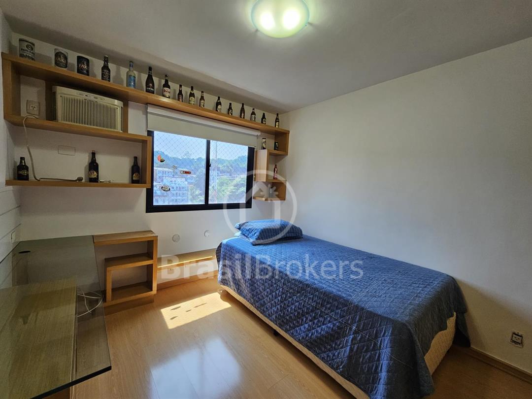 03 quartos com armários embutidos, sendo um quarto master com suíte e closet e uma ampla varanda com vista livre para as montanhas