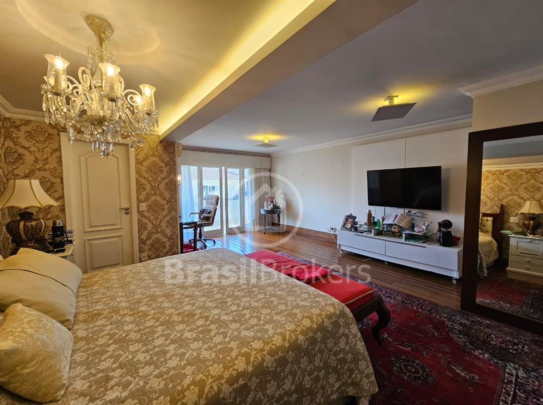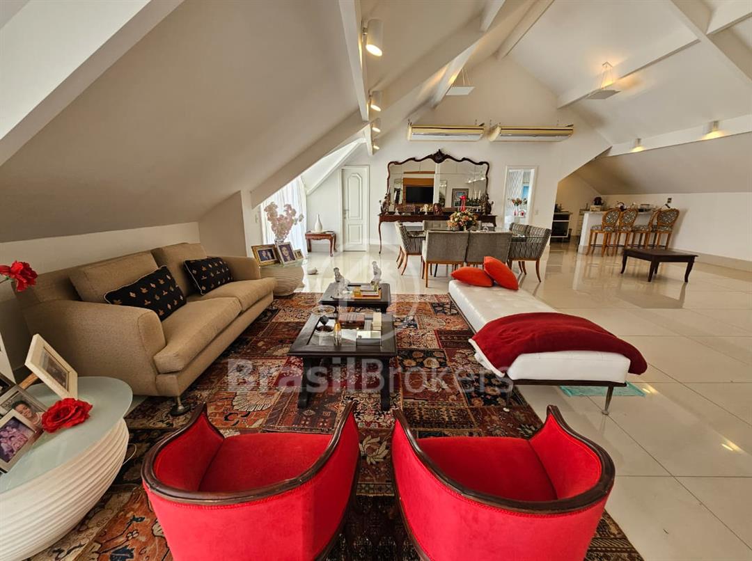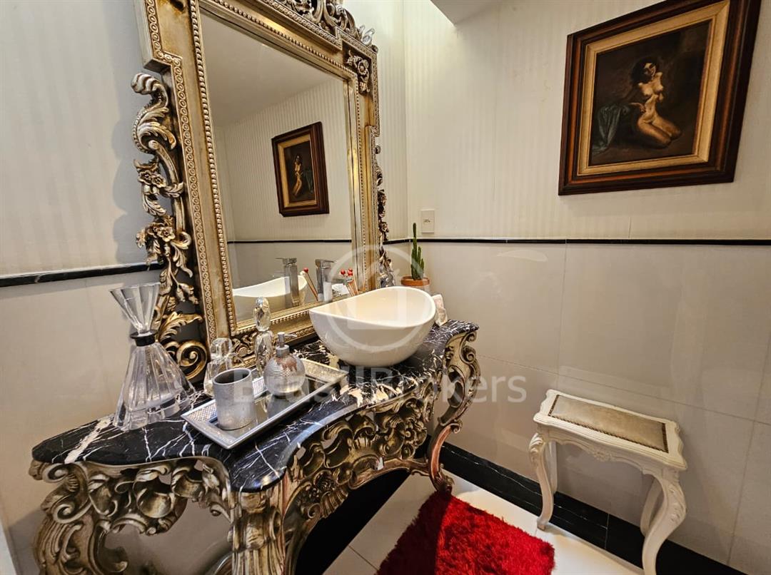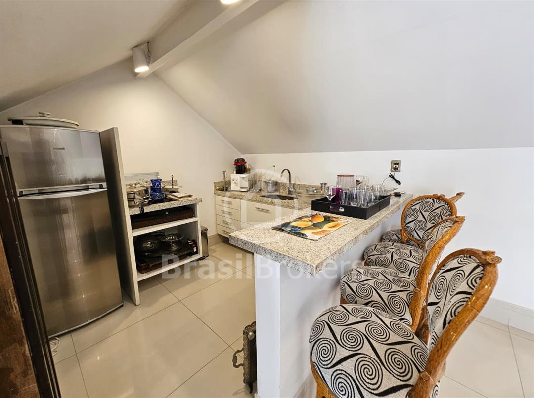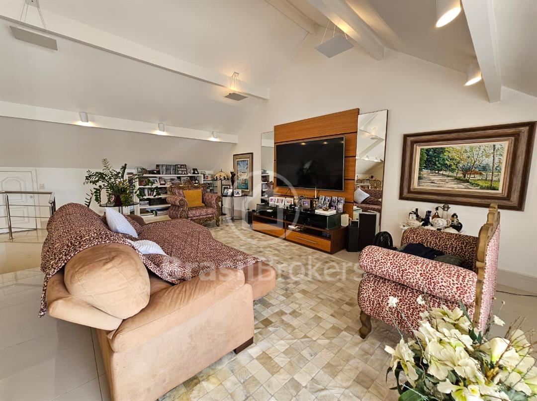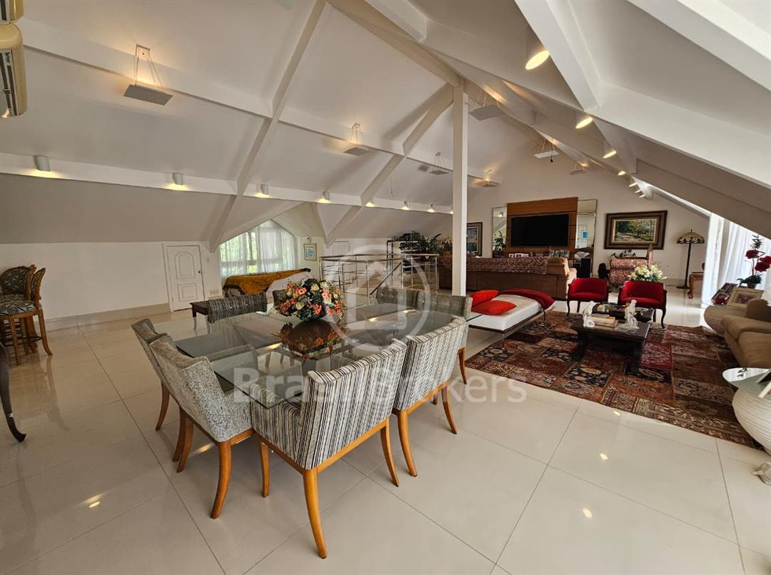 A cozinha é espaçosa e totalmente equipada com armários planejados, unindo praticidade e elegância. Destaques das suítes: No segundo andar 3 das 4 suítes possuem varanda privativa e closet. A suíte principal, conta com amplo closet, espaço para roupeiro e banheiro completo com box, chuveiro e banheira de hidromassagem, ideal para relaxar e aproveitar momentos de descanso. No terceiro andar, um sótão encantador ocupa toda a casa, atualmente utilizado como sala de TV com três ambientes, podendo se transformar em quatro