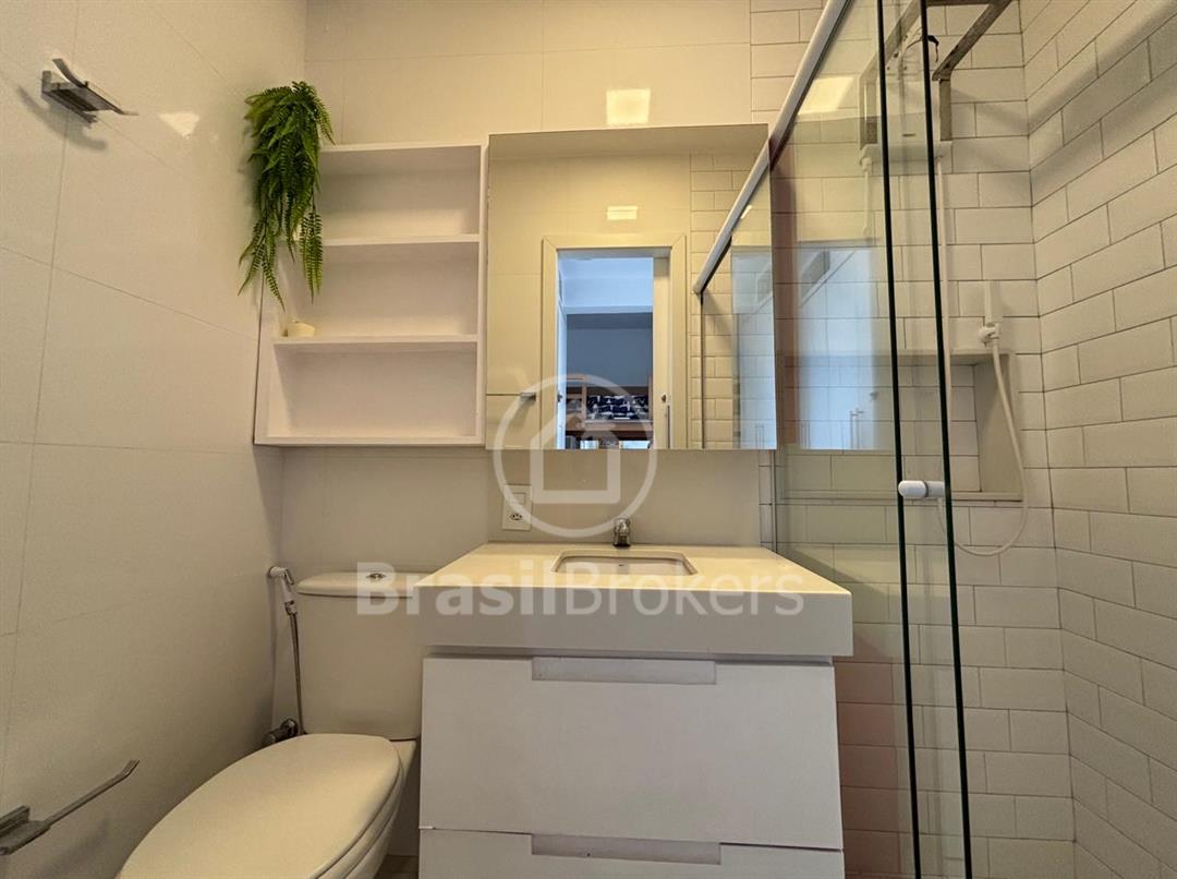 Um chuveiro externo, depósito e lavabo. Uma suíte master com closet e banheiro com duas pias e dois chuveiros completam o conforto deste andar