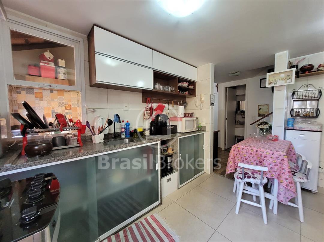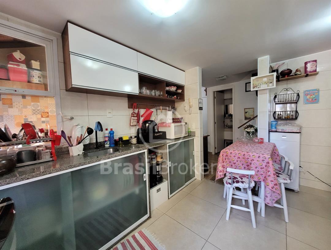 A integração da cozinha com a varanda proporciona um ambiente perfeito para receber amigos e familiares