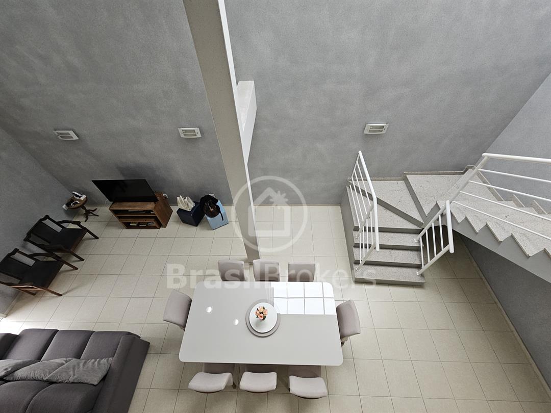 No primeiro piso, encontra-se uma sala ampla, a cozinha com móveis planejados e despensa, um lavabo e um quarto - que pode ser usado como escritório