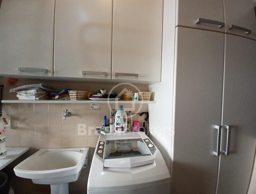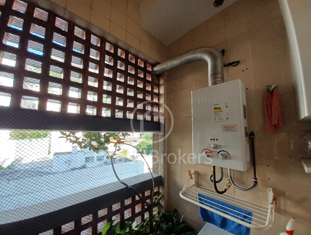 É composto por sala em 2 ambientes e acesso à varanda com vista livre para muito verde e prédios ao longe, 2 quartos com armários, sendo 1 suíte com ventilação natural no banheiro, banheiro social com box blindex, copa-cozinha espaçosa e armários planejados, área de serviço com aquecedor de água à gás e dependência completa