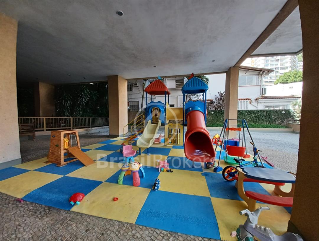O imóvel tem direito a 1 vaga escriturada, solta e demarcada.Prédio imponente é localizado na parte baixa da rua Sacopã, fica em centro de terreno e dispõe de 3 elevadores que servem os 7 apartamentos por andar