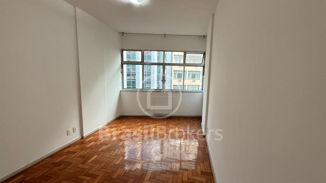 Ampla sala de estar com dois ambientes com janelas grandes e piso madeira taco Sinteko