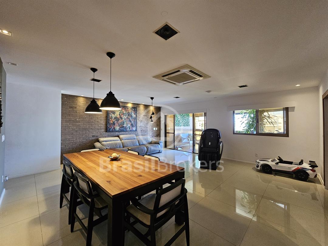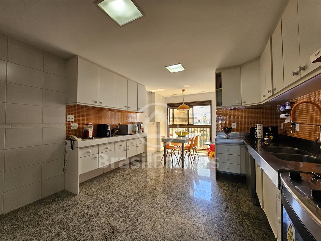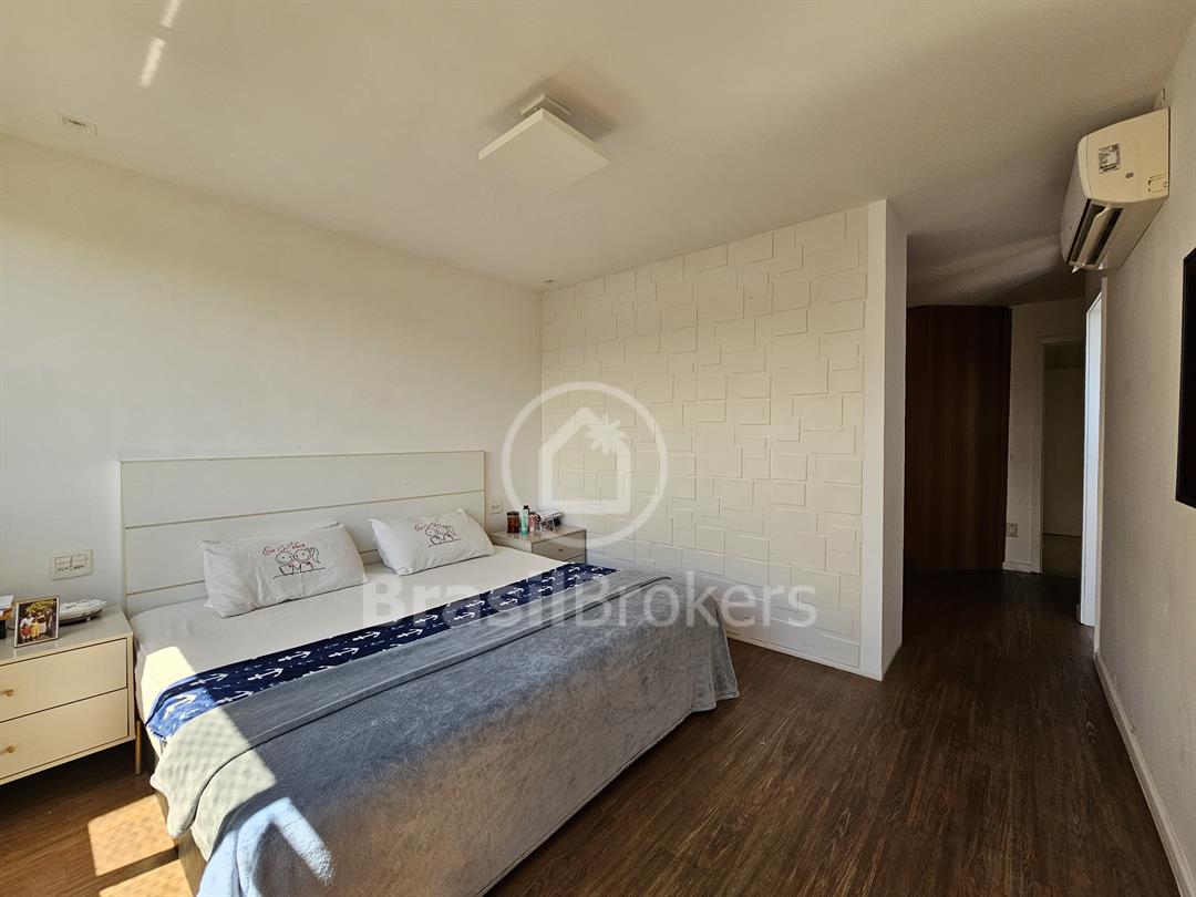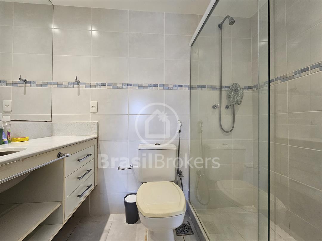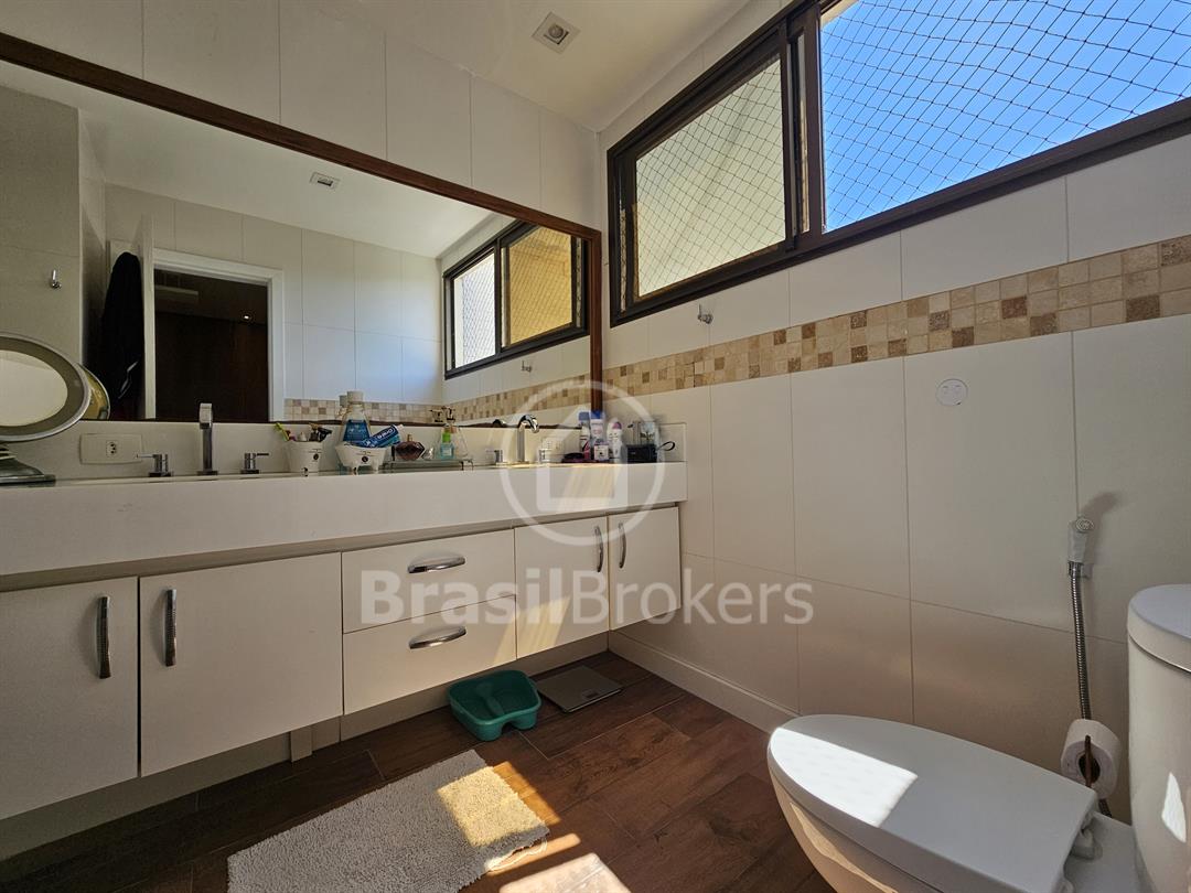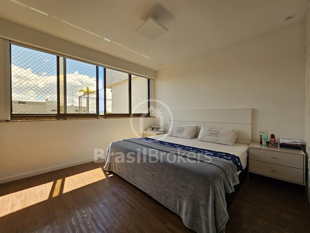A cozinha, espaçosa e funcional, conta com despensa e banheiro de serviço. No segundo piso, a área de lazer é completa, com piscina, churrasqueira e banheiro externo, garantindo praticidade e conforto, além de duas suítes generosas com vistas totalmente livres. Localizado no exclusivo Condomínio Península Evidence, na Barra da Tijuca, este imóvel oferece segurança 24h, estrutura de lazer completa e uma localização privilegiada