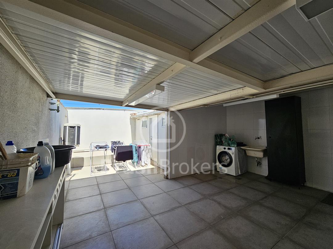 O imóvel ainda conta com direito a uso da laje, já regularizada em cartório, atualmente convertida em uma ampla lavanderia, com espaço suficiente até mesmo para montar uma oficina ou área de hobby. No primeiro piso, o quarto master e a sala possuem varandas aconchegantes