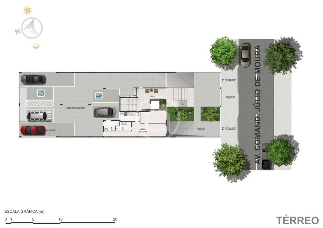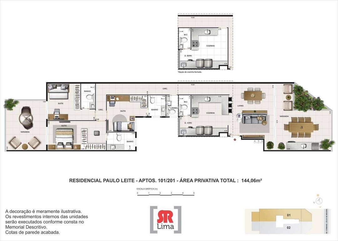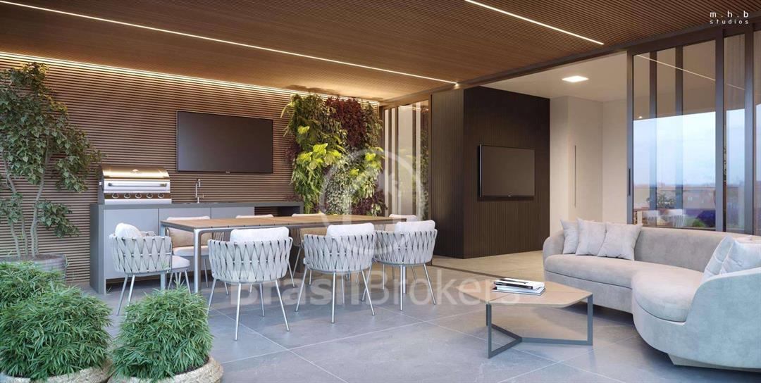 A planta inteligente conta com 3 suítes, sala de estar/jantar integrada, cozinha, lavabo, área e banheiro de serviço, além de 3 vagas na garagem