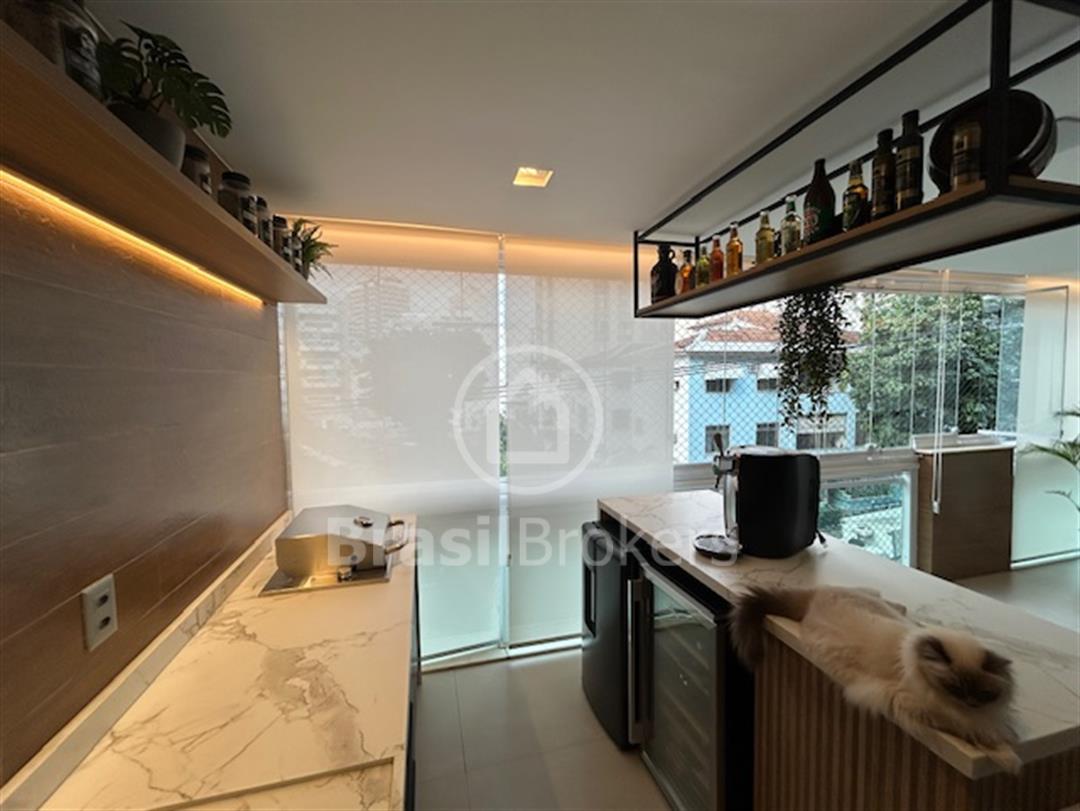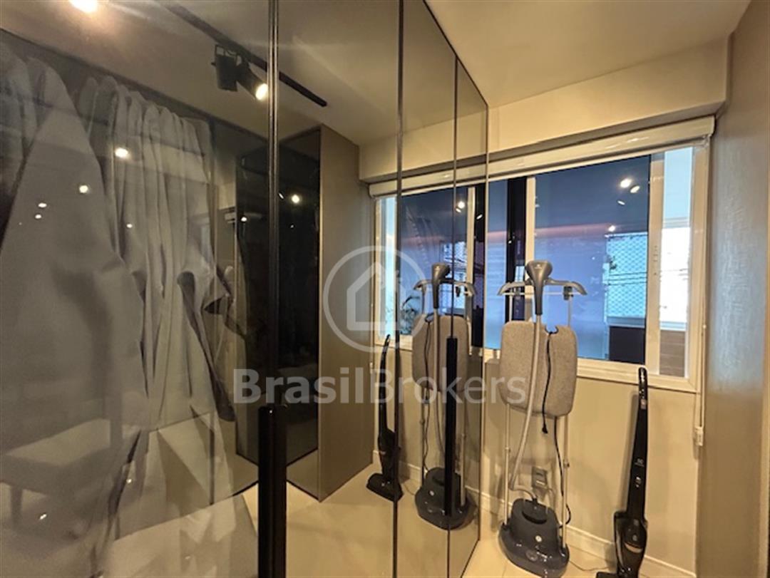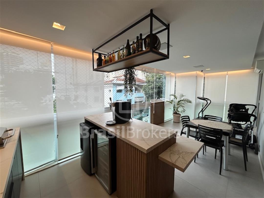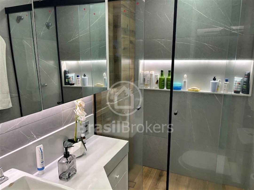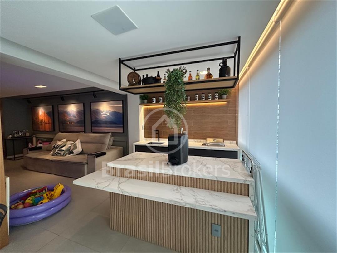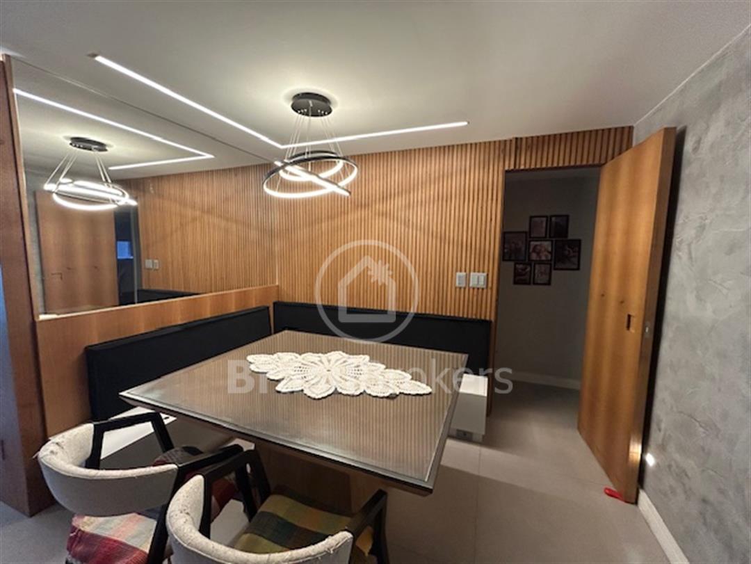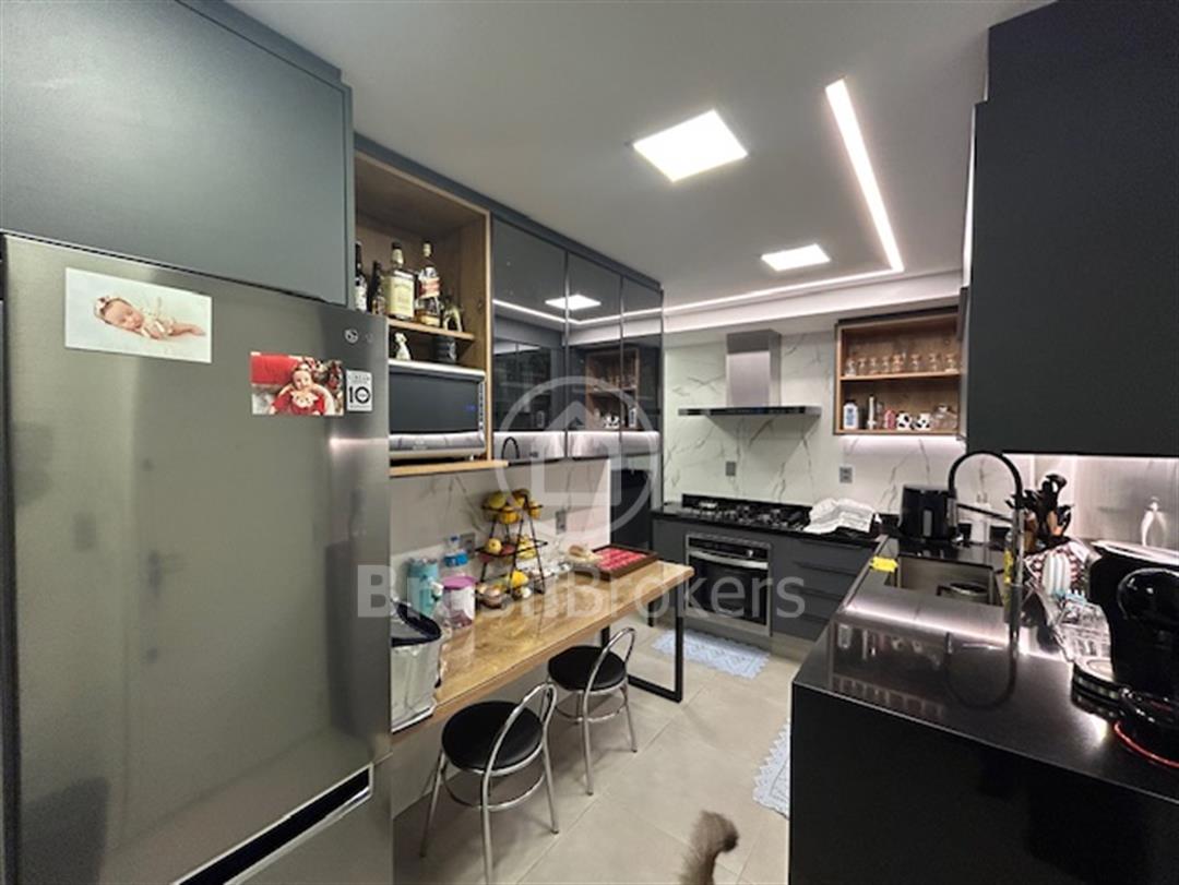todo em porcelanato, lavabo todo reformado, sala ampliada para varanda fazendo um único ambiente, varanda toda em cortina de vidro, gesso desenhado com espaço gourmet e churrasqueira, bancadas da varanda em siles tone, isolamento acústico na sala e no quarto, automação para Alexa no quarto casal, todos os cômodos com armários de ótima qualidade, sendo que um dos quartos foi aberto e feito um excelente closet com armários de portas espelhadas