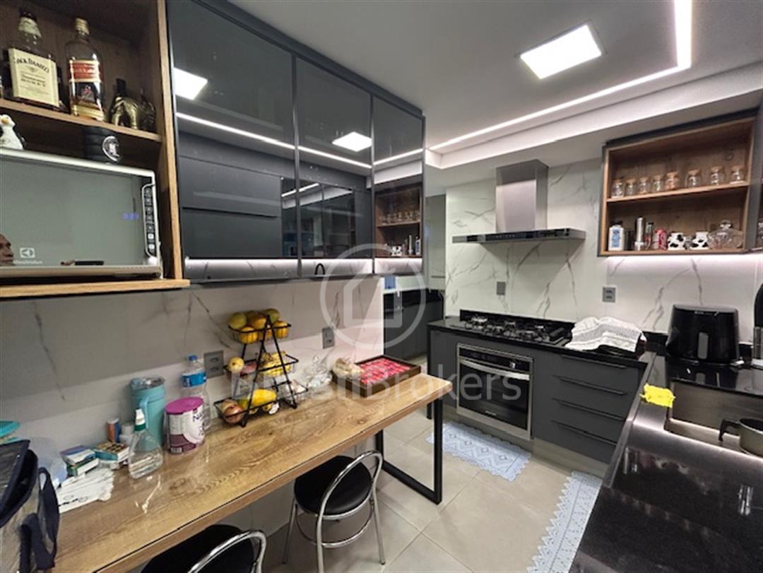 Imóvel possuí 03 suítes com armários embutidos planejados, blindex, espelhos, cozinha totalmente planejada com armários planejados, cooktop, forno