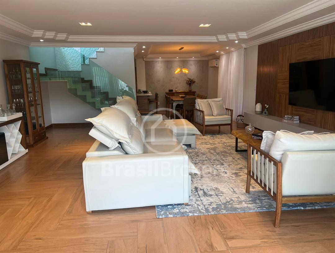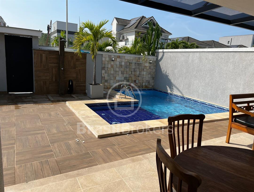 Residencial Jardins de Maria Casa mobiliada Imagine viver em uma casa triplex de luxo no Recreio dos Bandeirantes com 334 m² de pura sofisticação, em um condomínio fechado com segurança 24hs? Este imóvel destaca-se pela sua beleza interior com cômodos amplos e mobília sofisticada, piscina privativa, cascata, onde os dias quentes são um convite ao lazer. Área gourmet completa, com churrasqueira, forno a lenha e bancada com fogão de indução