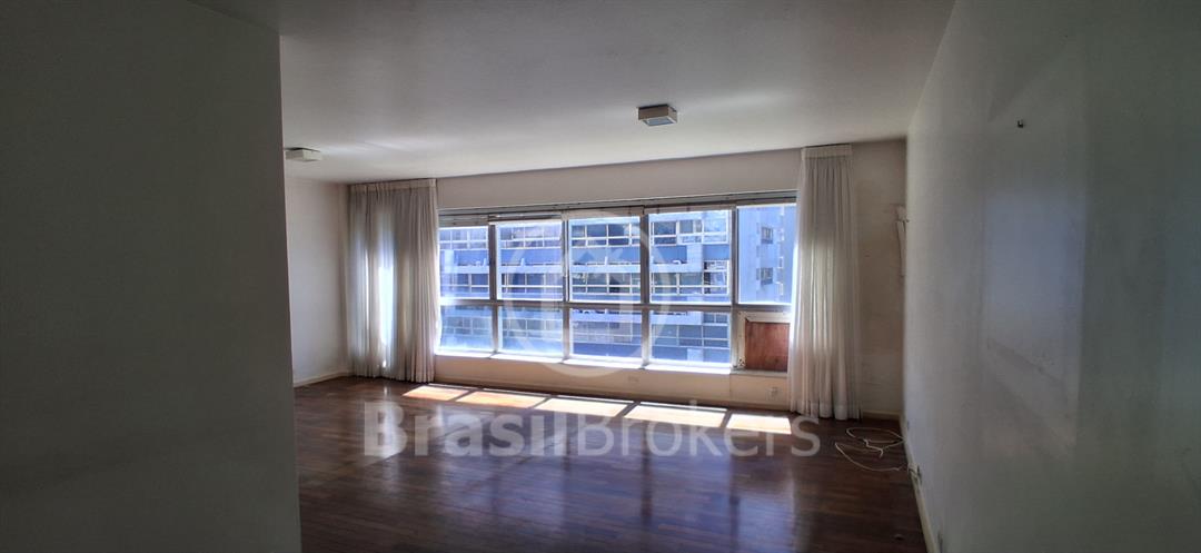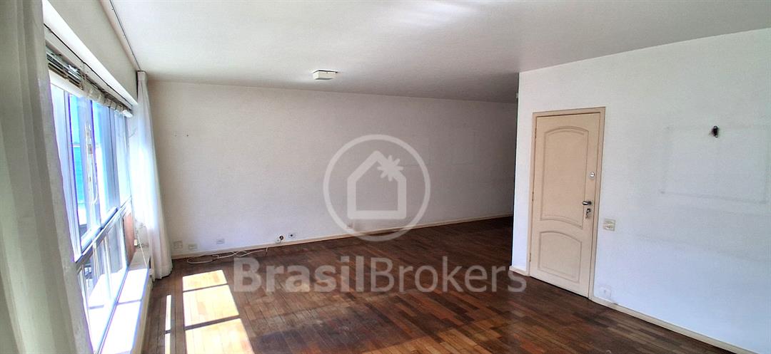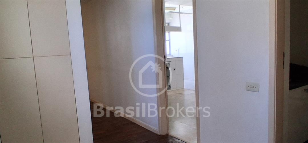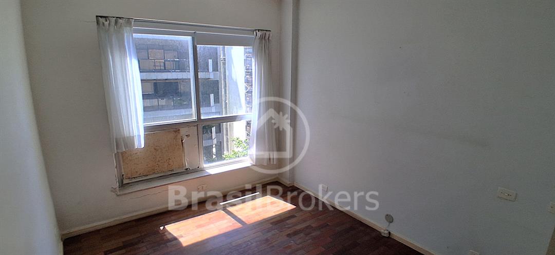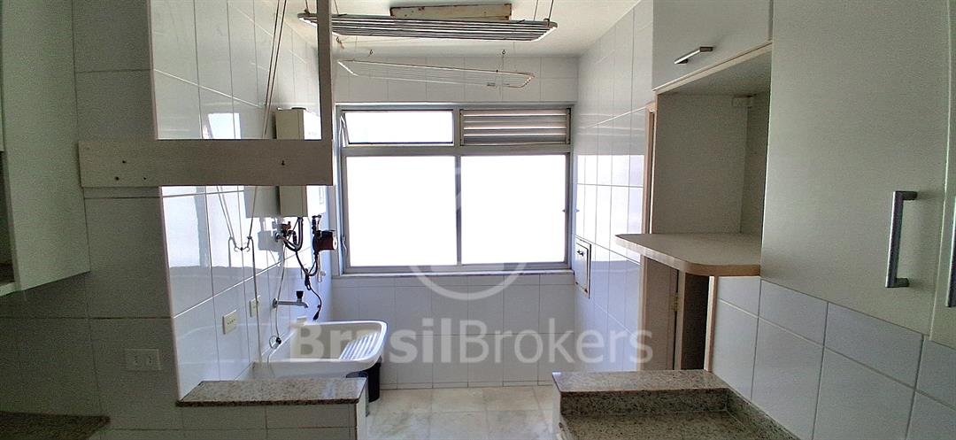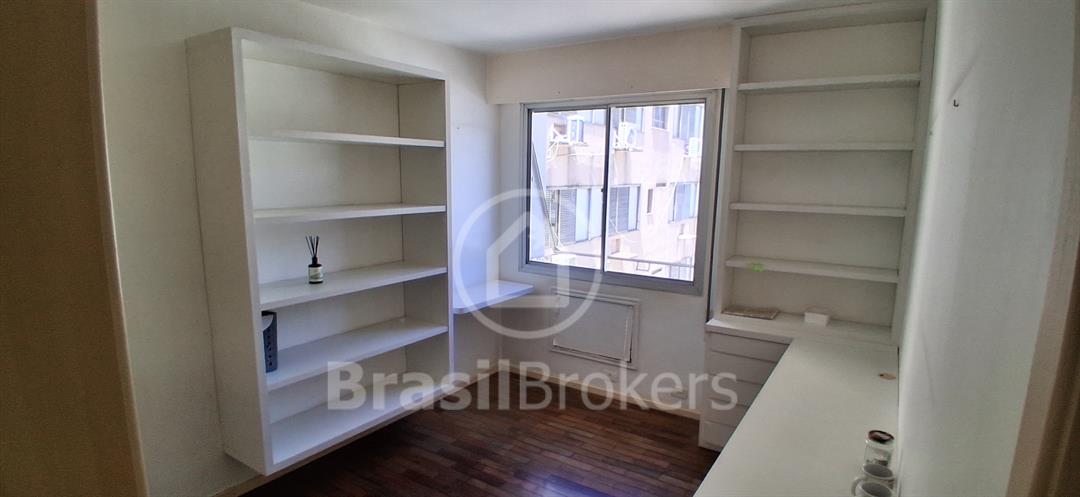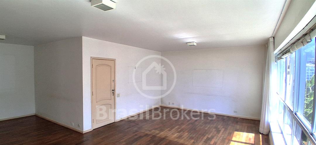 Sala ampla dividida em 3 ambientes com vista lateral da praia do Leblon; hall de acesso para 3 quartos, sendo uma suíte, banheiro social e lavabo ; cozinha ampla com área de serviço com lavanderia; dependências completas de empregada ; duas vagas de garagem garantidas na escriltura