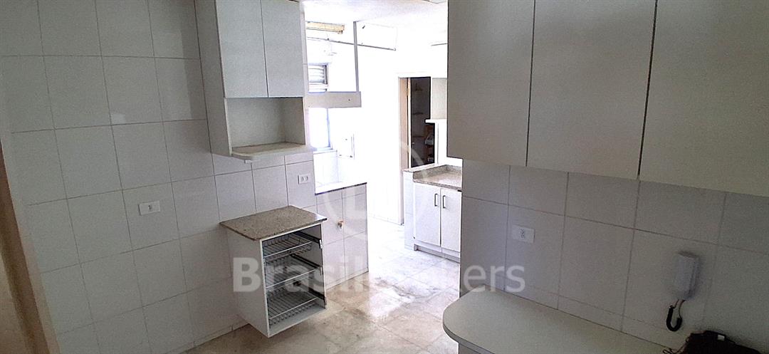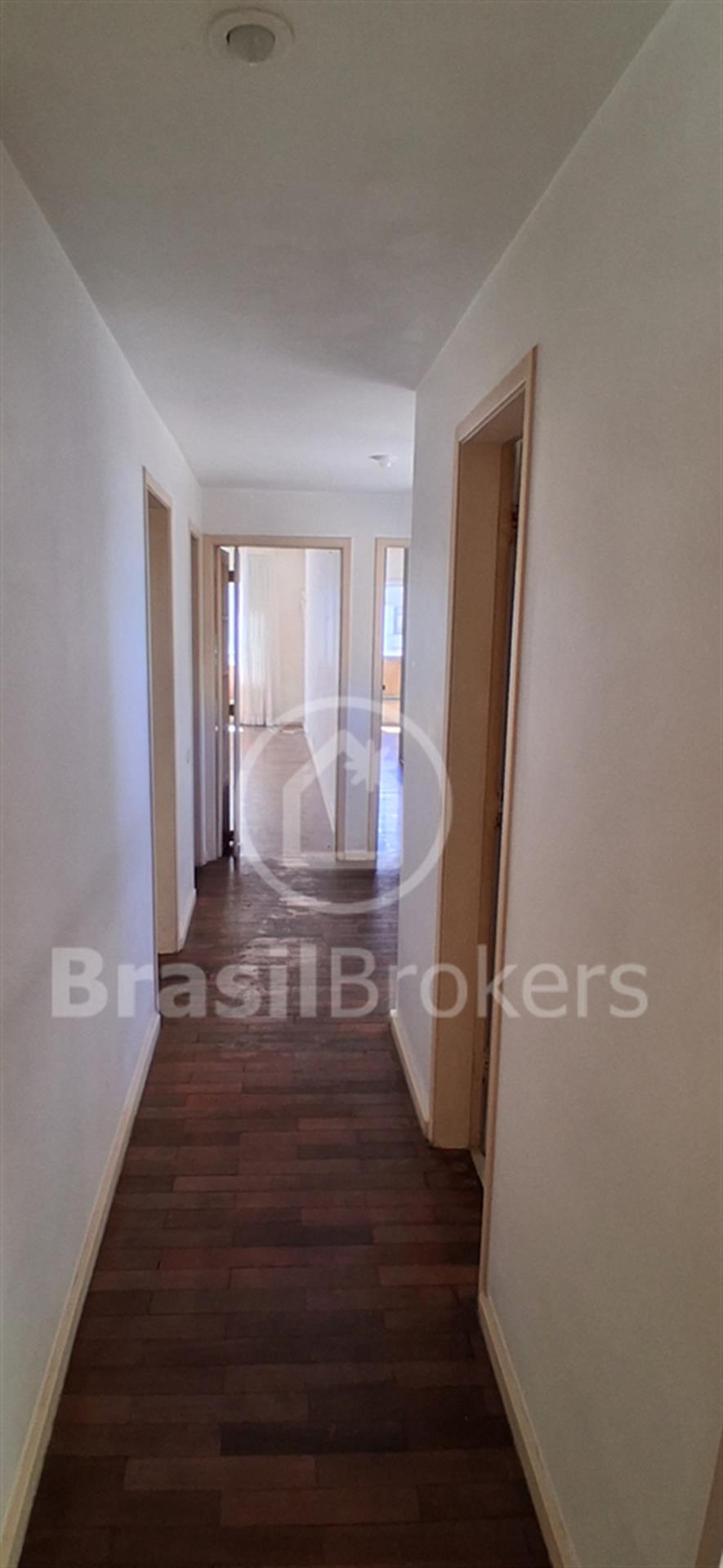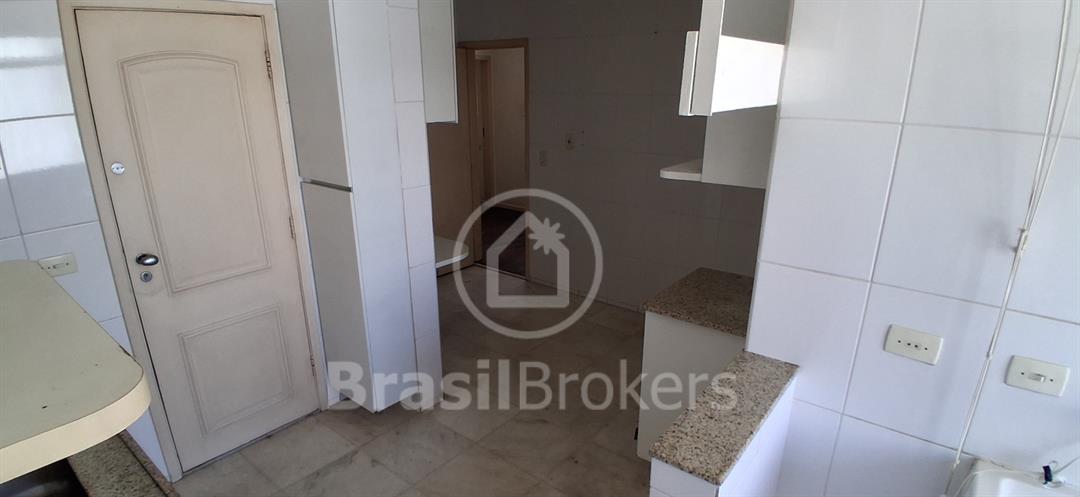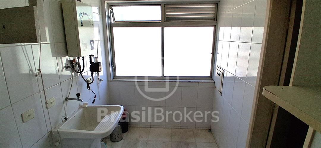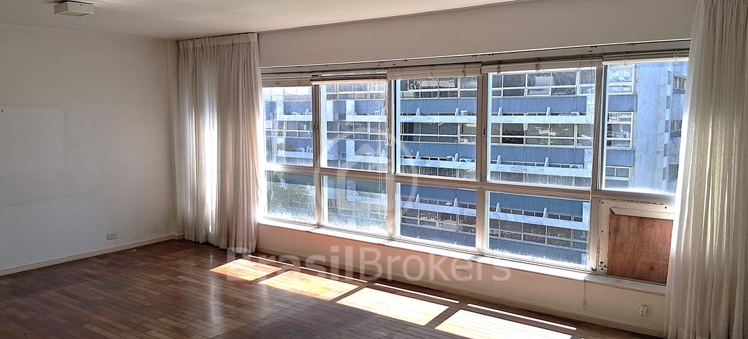 Sala ampla dividida em 3 ambientes com vista lateral da praia do Leblon; hall de acesso para 3 quartos, sendo uma suíte, banheiro social e lavabo ; cozinha ampla com área de serviço com lavanderia; dependências completas de empregada ; duas vagas de garagem garantidas na escriltura