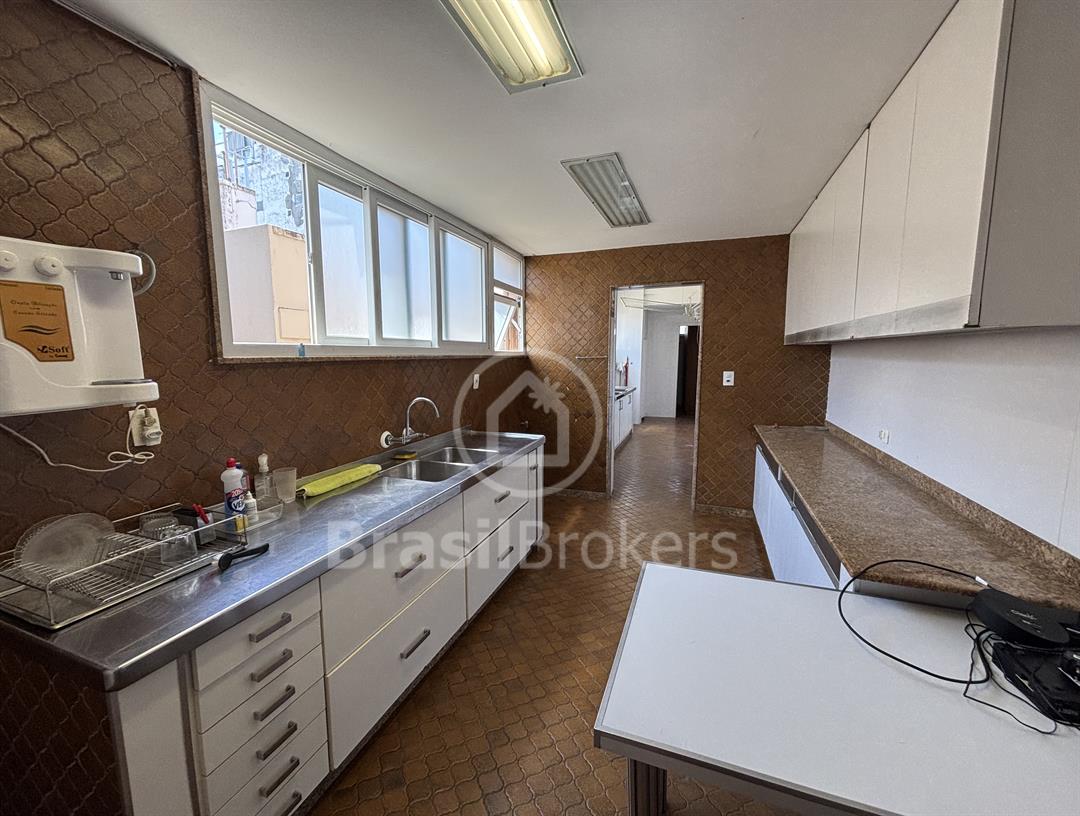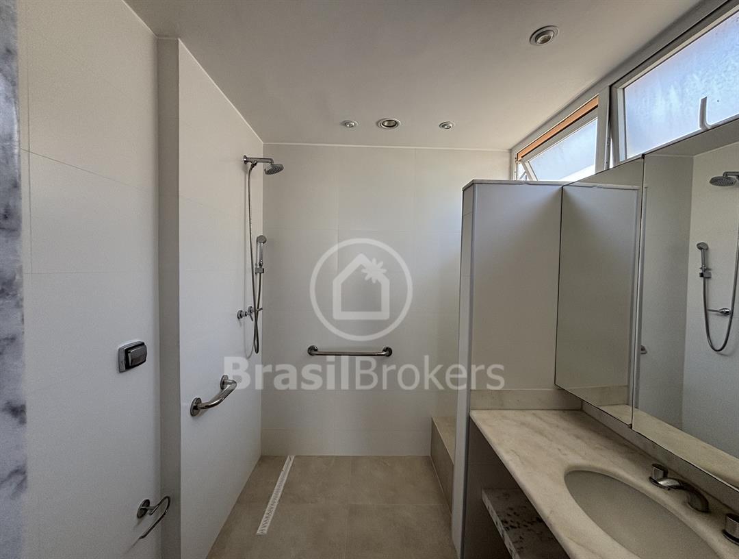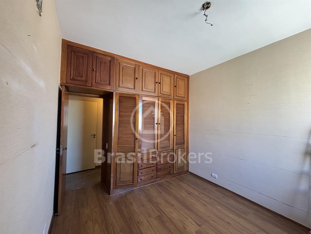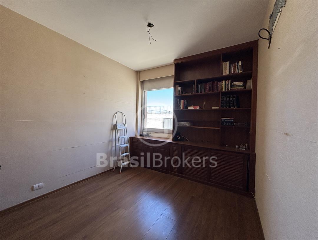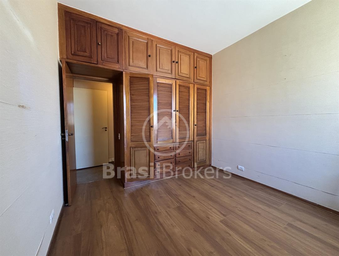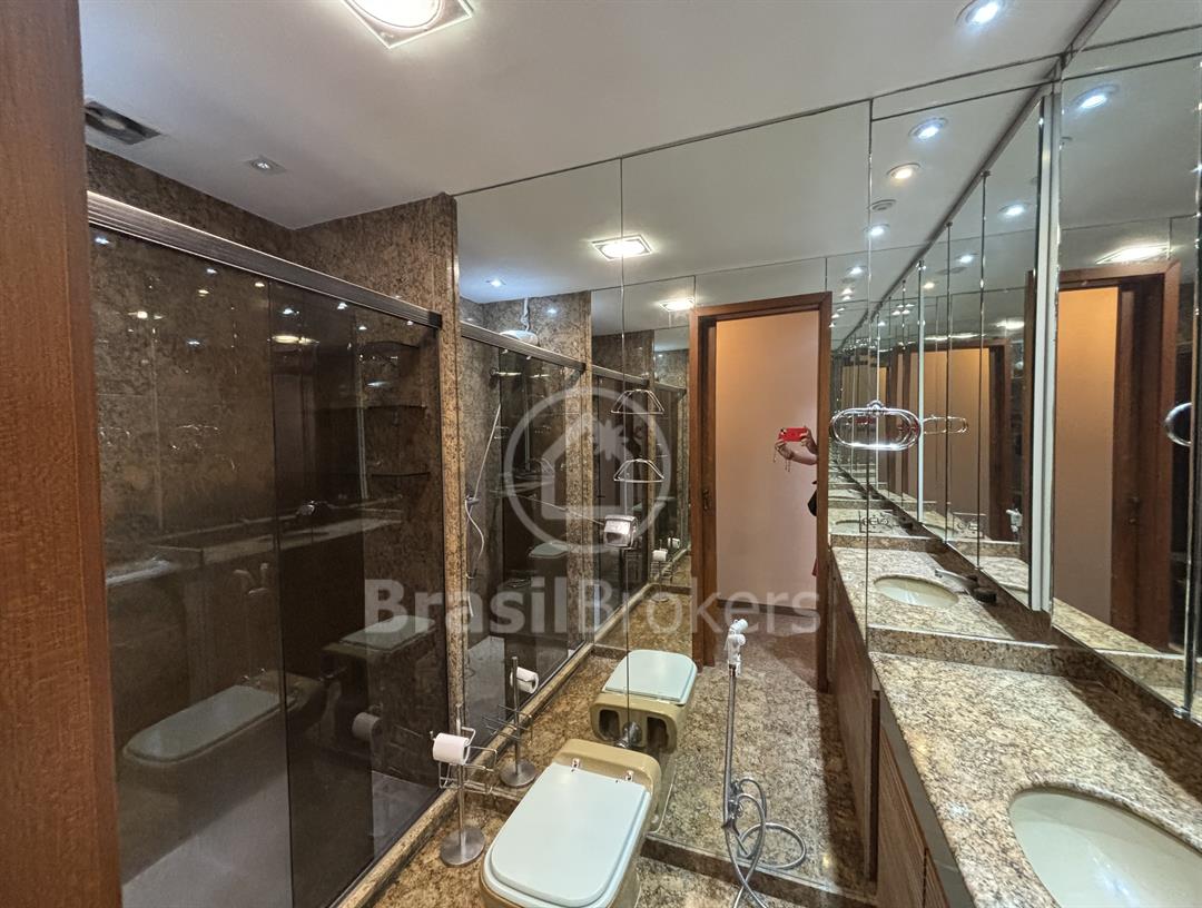 Apartamento na 1ª quadra do Leblon, 226 m², original 4 quartos, atualmente com 3 quartos com fácil reversão para o 4º quarto, sendo 1 suíte (com 1 closet), com possibilidade de fazer novas suítes, podendo também fazer integração da sala com a cozinha, piso em madeira lindíssima em Ipê rosa, andar alto, planta circular, claro e arejado, pé direito alto (3 m), vista lateral da praia do Leblon, estrutura centro de terreno, excelente iluminação com o sol da manhã na lateral da sala e nos quartos, e um sol da tarde na outra lateral da sala, instalações elétricas e hidráulicas renovadas, sala ampla em 3 ambientes (incluindo living), todos os cômodos possuem armários de madeira maciça nobre, 2 dependências completas, área de serviço com armários, corredor de acesso aos cômodos com armários (louceiro/rouparia), cozinha ampla, uma despensa grande para louças e utensílios, 3 vagas escrituradas