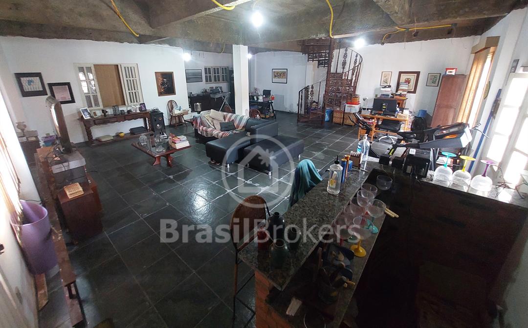 A casa possui em sua parte inferior um amplo espaço com salão, um quarto grande e banheiro