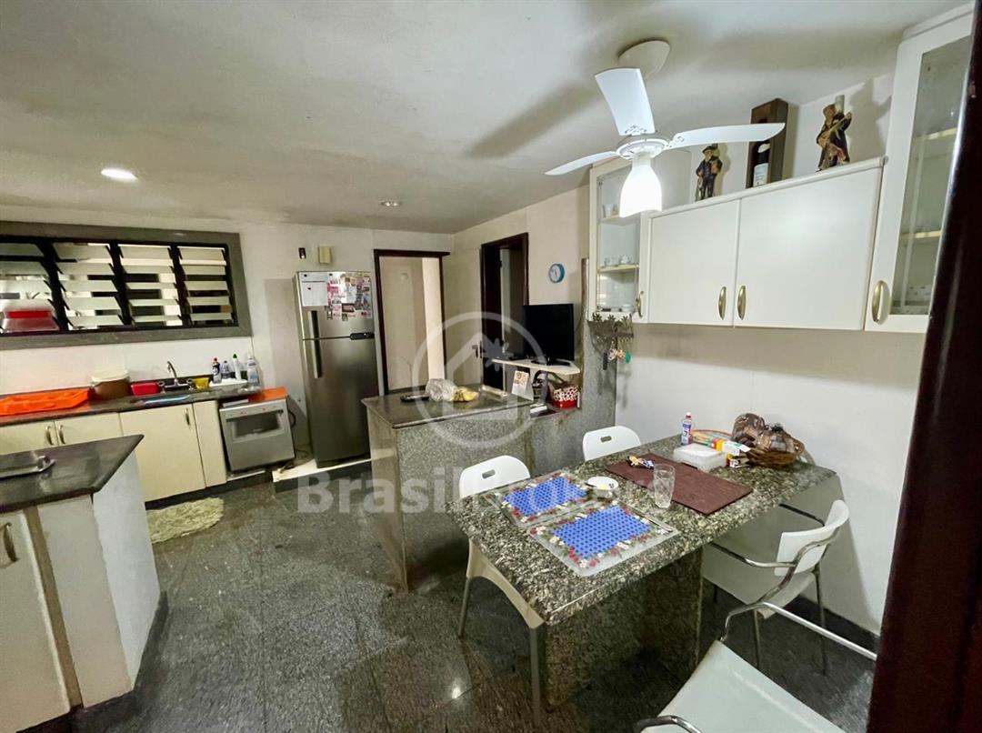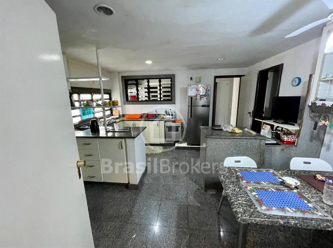 A cozinha, com ilha em mármore e armários planejados, é perfeita para os amantes da culinária